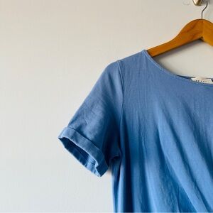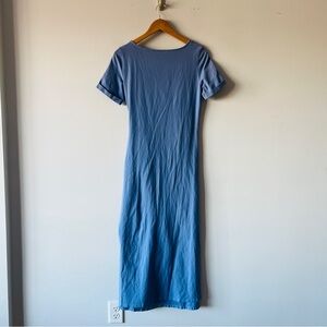 Sezane Pippa Vintage Blue Tie Waist Midi Dress Organic Cotton Size M