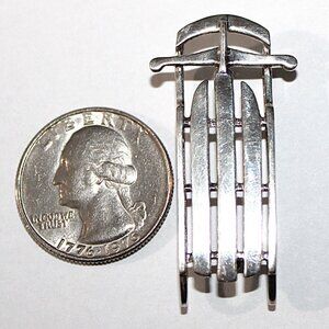 Brooch measures 1 and 11/16ths of an inch length and 9/16ths of an inch wide and weighs 6 grams.