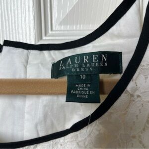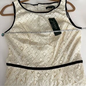NWT Lauren Ralph Lauren Cream Lace A line Dress Black Trim Size 10