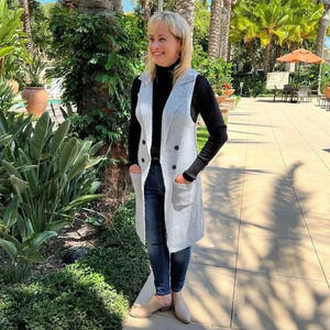 New, Long Sweater Vest Heather Blue Gray Grey Open Front Pockets Cozy Soft Sleeveless.