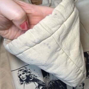 Soft cream hoodie with The Eras Tour print. Ideal for relaxed wear.