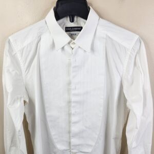 Dolce & Gabbana Mens White Cotton Long Sleeve Poplin Bib Tuxedo Shirt 15 - 38