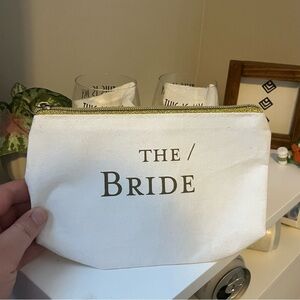 Set of two wedding planning glasses with a white bride pouch. Perfect for bridal preparations.