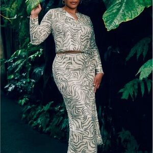 Eloquii NWT Sz 14 Zebra Patterned Sequined Maxi Skirt in Cream and Green