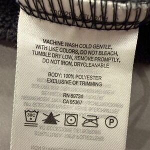 Material: Body 100% polyester fleece (per care tag).