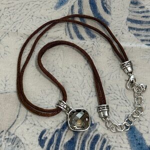 Brighton Venus Rising Necklace Taupe Champagne Swarovski Crystal Brown Cord 17"