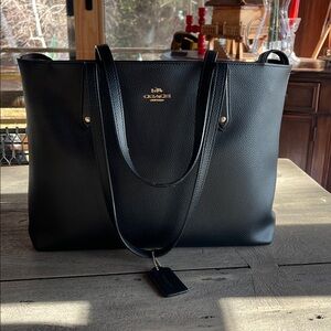 Coach Market Tote, Coach Black Tote, Coach Pebbled Leather Bag, Coach Work Tote, Coach Zip Top Tote, Authentic Coach Bag, Coach Purple Interior, Coach 69424