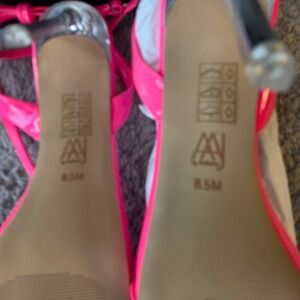 Aminah Zayn Strappy High Heel Sandal Neon Pink Clear Stilettos Heels 8.5 NIB