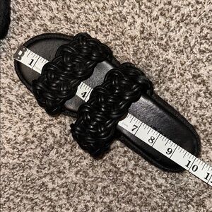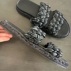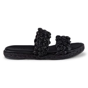 VINCE. Sullivan Braided Leather Flat Slide Sandals in Black, Size 7 or 8