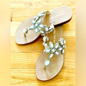 Ivanka Trump white & gold sandals with embellished gemstones size 4M
