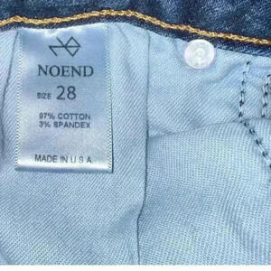 Beautiful dark wash NO END Hi Rise skinny jeans. These are made in the USA.These are 97% cotton and 3% spandex. These are a size 28.