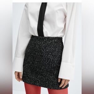 Tweed fabric. (SKIRT)Straight design. Short design. Mid-rise. Speckled print. Side zip fastening. Inner lining. Total look.