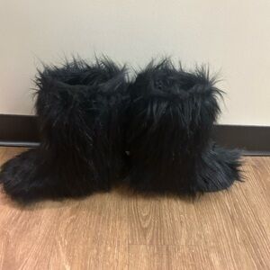Step out in style with these chic black faux fur boots. Perfect for adding a touch of glamour to any outfit.