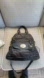 A prominent, round gold-tone turn-lock clasp on the front exterior pocket.