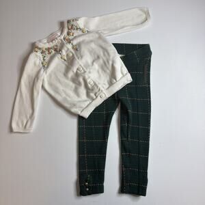 Janie And Jack Girls Embroidered Cotton Sweater & Leggings Set Size 12-18 & 2T
