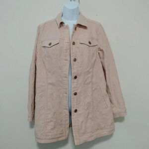 Chico's Size 1 Light Peach Embossed Floral Pattern Button Up Long Sleeves jacket