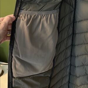 Long black puffer coat by L.L. Bean. Features a sleek design. Ideal for cold weather.