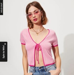 VICI Visalia Tie Front Cropped Cardigan In Pink Size L