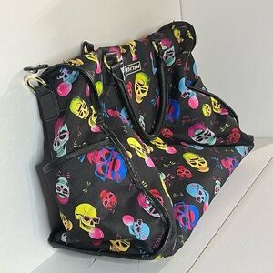 Betsey Johnson bright & colorful, neon, skull print duffle bag.