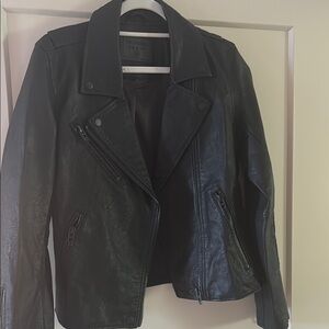 NWOT. Elevate your style with this sleek black leather jacket. Perfect for any occasion, it offers a timeless look and comfortable fit.