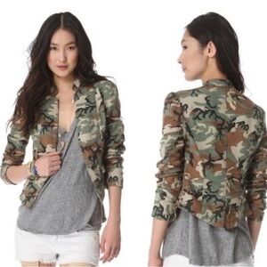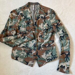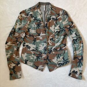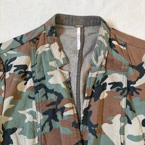 Free People fitted army camo button-front blazer jacket.