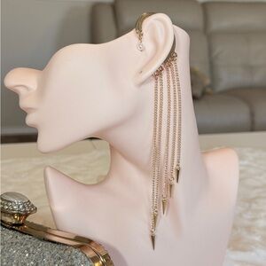Chic gold chain earrings with pointed drops. Perfect for a stylish look.