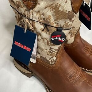 This style also has the Durango X-Treme Comfort Memory Foam footbed which provides all day comfort and support along with a cushion flex insole. This style has a fiberglass shank, rolled shank area and a lightweight and flexible molded EVA midsole. The outsole is slip and oil resistant, dual-density and abrasion resistant rubber with a double row sole stitch around the square toe for added durability and a 1 ½” rocker heel.
