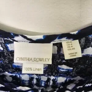 Linen Summer Dress Women's Size 4 Nautical Coastal Blue & White Cynthia Rowley