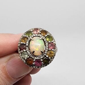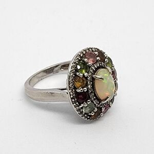Vintage 925 Sterling Silver Size 8 Authentic Carol Brodie Fire Opal Tourmaline Ring