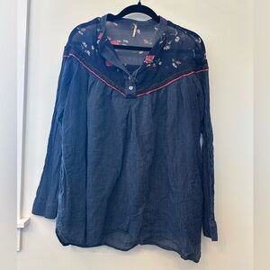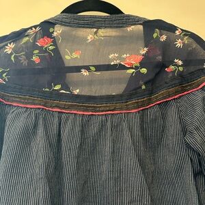 Free People Hearts and Colors Floral Striped Tunic Top Navy Pink S/P