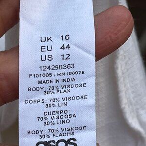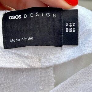 ASOS Design NWT Women's Linen Blend Mini Swing Tie Straps White Sundress Size 12