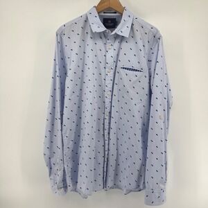 Scotch Soda Men's XL Light Blue Geometric Print Button Down Shirt Regular Fit