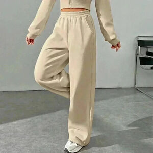Khaki Casual Women's Zipper Front Hoodie And Pants Set