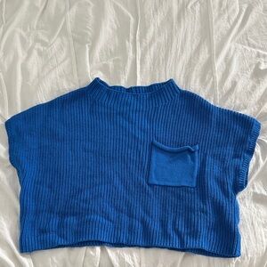 Elevate your casual wardrobe with this vibrant blue crew neck sweater. Featuring a stylish pocket, it's perfect for a chic, laid-back look.