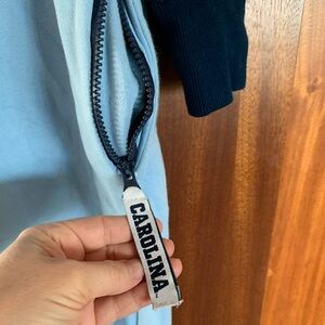 Please note a few small stains in last 2 pics. Still lots of life in this very comfortable UNC zip up onesie!