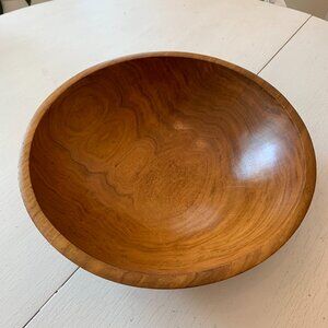 This is a preowned Vintage Wooden Salad/Fruit/Bread Bowl with Beautiful Unique Wood Grain Pattern. It is in great condition. It has a beautiful wood grain pattern. It measures approximately 13" in diameter. It has an American Heritage, Grandpa Chic, Farmhouse style.