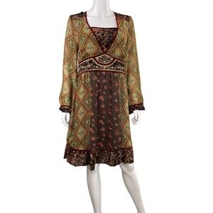 Double D Ranch Bohemian Print Velvet Trimmed Mixed Media Midi Dress Size Medium