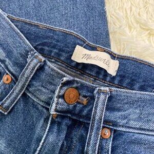 Madewell Blue High Rise The Mom Jeans Size 00 Excellent used Condition, no rips, stains or marks. Size :00 Inseam:30” Waist:13” Hips: 18” Rise:12 1/2 Box#9
