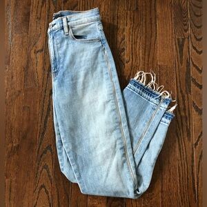 Hudson Women's 27 Holly Straight High-Rise Side-Released Zipper Raw Hem Jeans