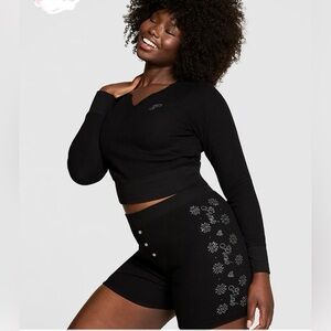 NEW Victoria's Secret PINK Pajama Set Size XL Thermal Long BLING 2 Piece Black NWT