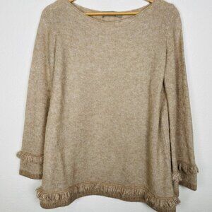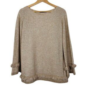 D.Exterior Almond Wool & Alpaca Fringe Luxury Sweater w/ Fringe Sz. Small