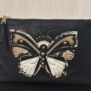 INC International Concepts Black Faux Suede Butterfly Wristlet Clutch Like New