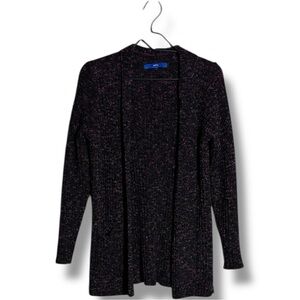 Apt. 9 Black and Purple Chunky Knit Open Front Long Sleeve Cozy Cardigan Sweater