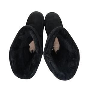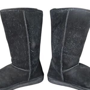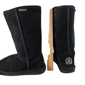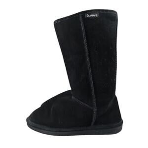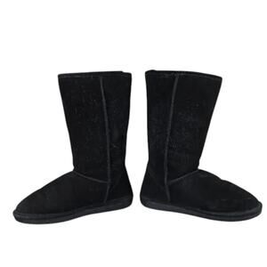 Used Bearpaw Shoes Women 9 Boot Winter Tall Emma Leather Sheepskin Warm Comfort Black