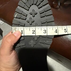 These CECELIA NEW YORK combat boots feature a striking black and gold color scheme, offering a rugged yet fashionable look. Crafted with a high-top design and durable rubber sole, they ensure both style and protection. The hardware adds a touch of elegance to their robust construction. Size 8M in EUC.
