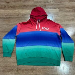 POLO Ralph Lauren Ombre Spectre Hoodie Sweatshirt Mens XL Colorblock Red Blue