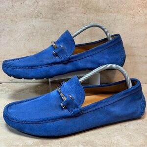 Gucci LABRADOR Zaffre Blue Suede Bit Accent Driver Loafer 370592 Mens 8 US