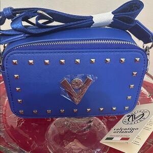 Black Studded Valentino Orlandi Crossbody Bag with guitar strap