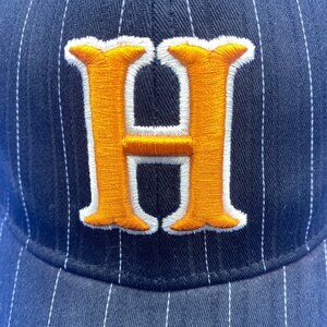 HOOTERS Vintage Black with White Pinstripes Baseball Hat Cap Elastic band OS. This vintage hat features the official logo "H" in orange and "hooters" on the rim.