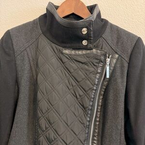 Kensie Women's Wool Blend Full Zip Overcoat Black Faux Leather Accent. S…